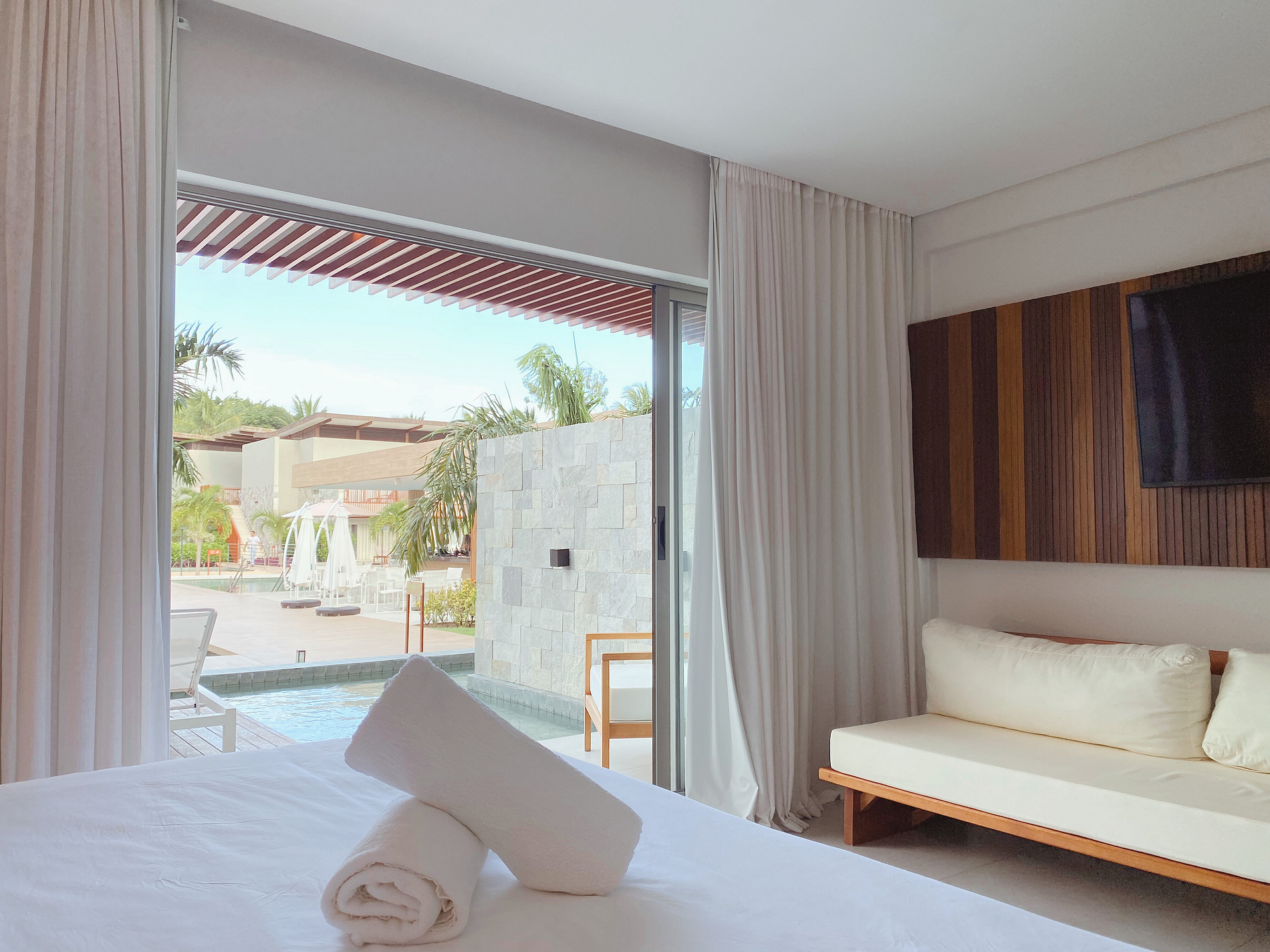 Île de Pipa offers high-end accommodations that combine modern comforts with rustic charm. Rooms and suites are designed to provide maximum relaxation, and many of them offer stunning pool views.