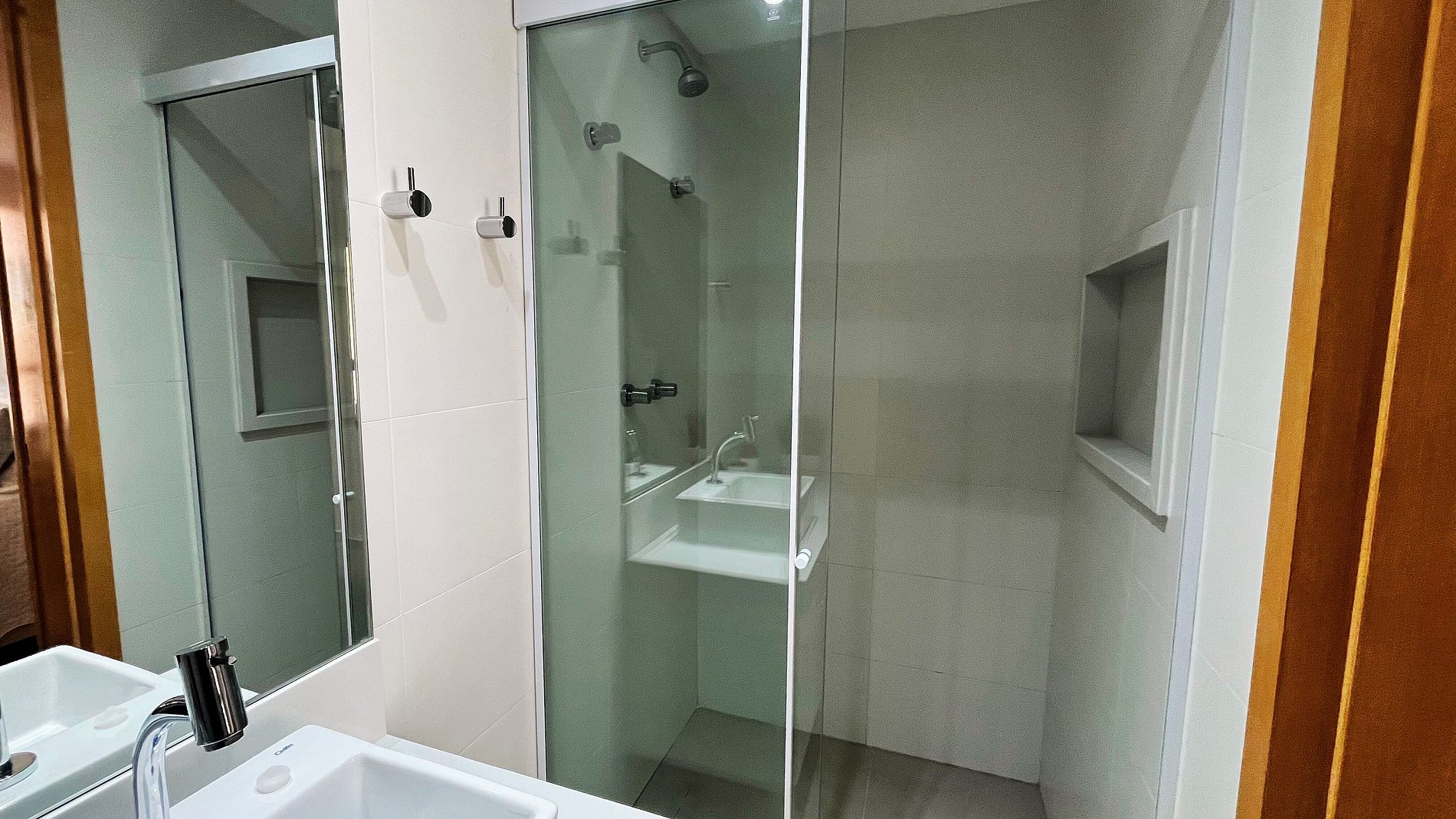 The first suite is equipped with a comfortable bed and built-in closets and a Smart TV, ensuring practicality and organization. The second suite is an option with a single bed and an extra bed, great for children.