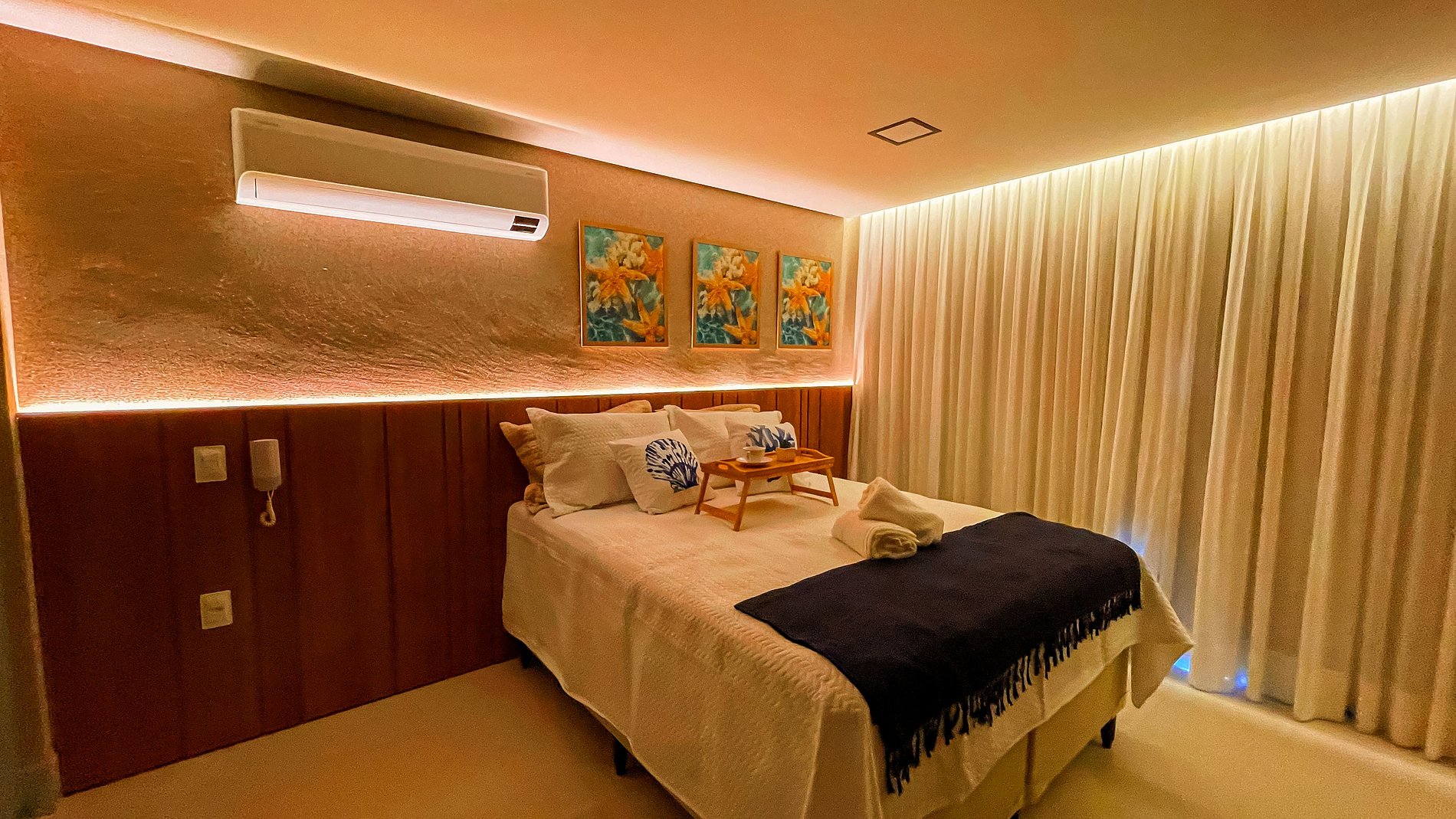 O charmoso apartamento possui um ambiente único, composto por uma cozinha compacta para pequenas refeições e o quarto com cama de casal. São equipados com Smart TV e Wi-Fi gratuito. Disponibilizamos enxoval de cama, com lençóis e toalhas, além de alguns utensílios domésticos para preparar pequenas refeições no conforto do seu próprio espaço. Como cortesia, oferecemos alguns amenities.
