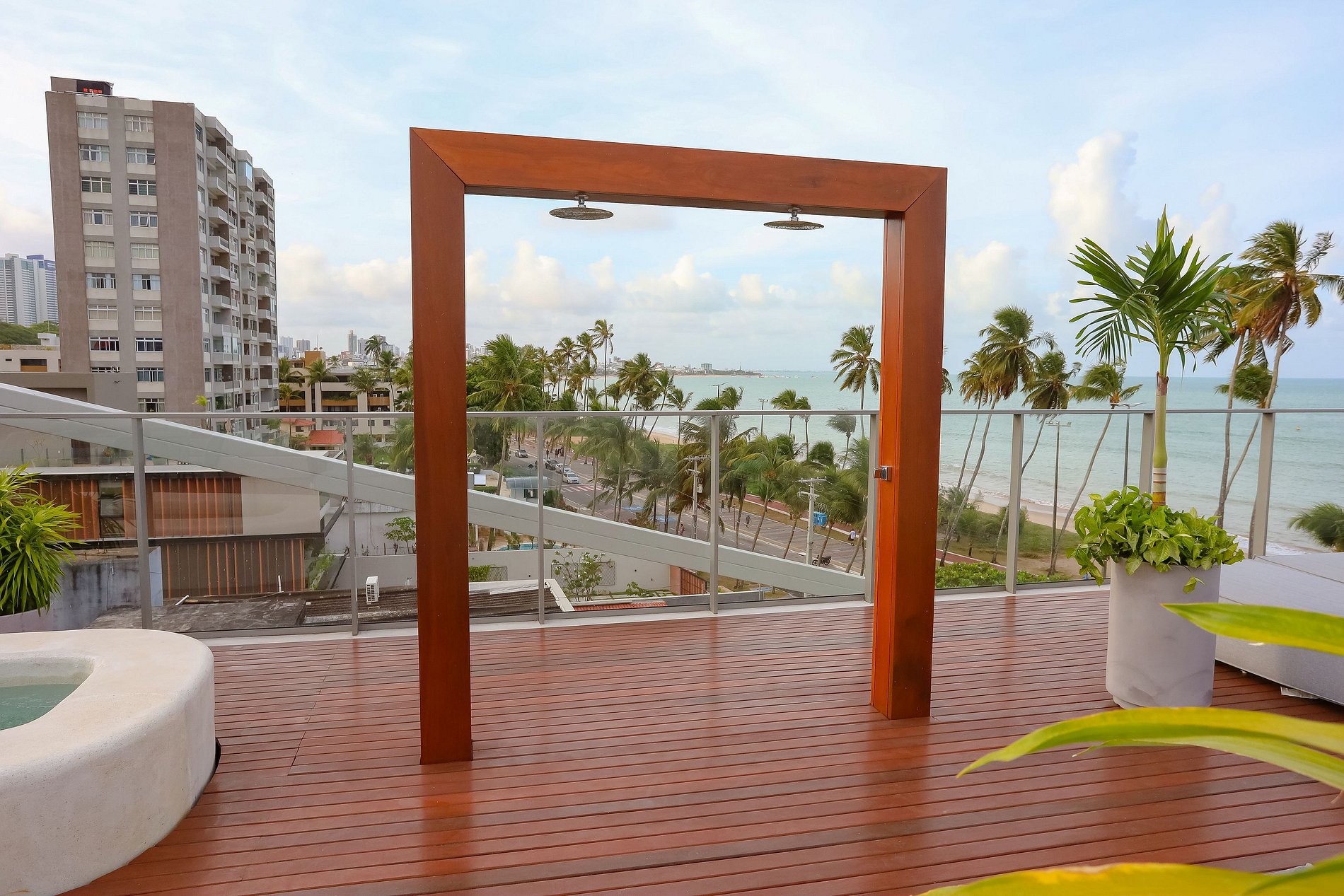 Com 24m², acomoda até 3 pessoas em uma cama casal queen e uma cama de solteiro, possui cozinha compacta com microondas, frigobar, cafeteira, sanduicheira e alguns utensílios domésticos. Na orla da Praia de Cabo Branco, perto de bons restaurantes e bares. Fica a 2,4km do Largo de Tambaú, 4km do Mercado de Artesanato, 2,7km do Farol do Cabo Branco e tem vista para as Piscinas Naturais do Seixas. Área de lazer na cobertura, piscina aquecida, sauna, academia, coworking e estacionamento rotativo.