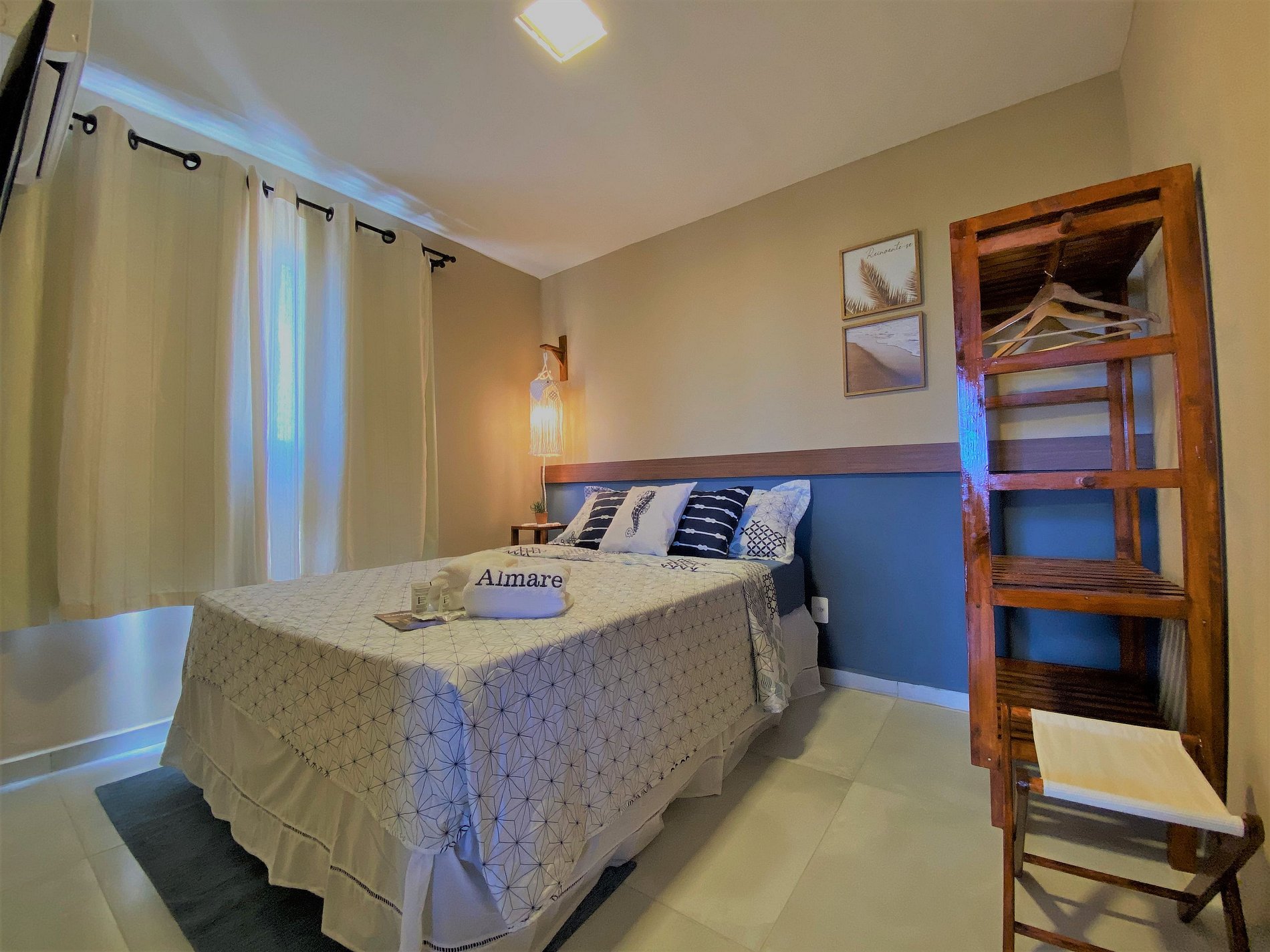 O quarto suíte dispõe de ar condicionado e o segundo quarto dispõe de TV e ventilador.