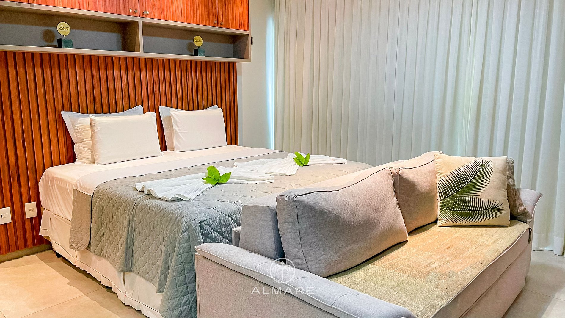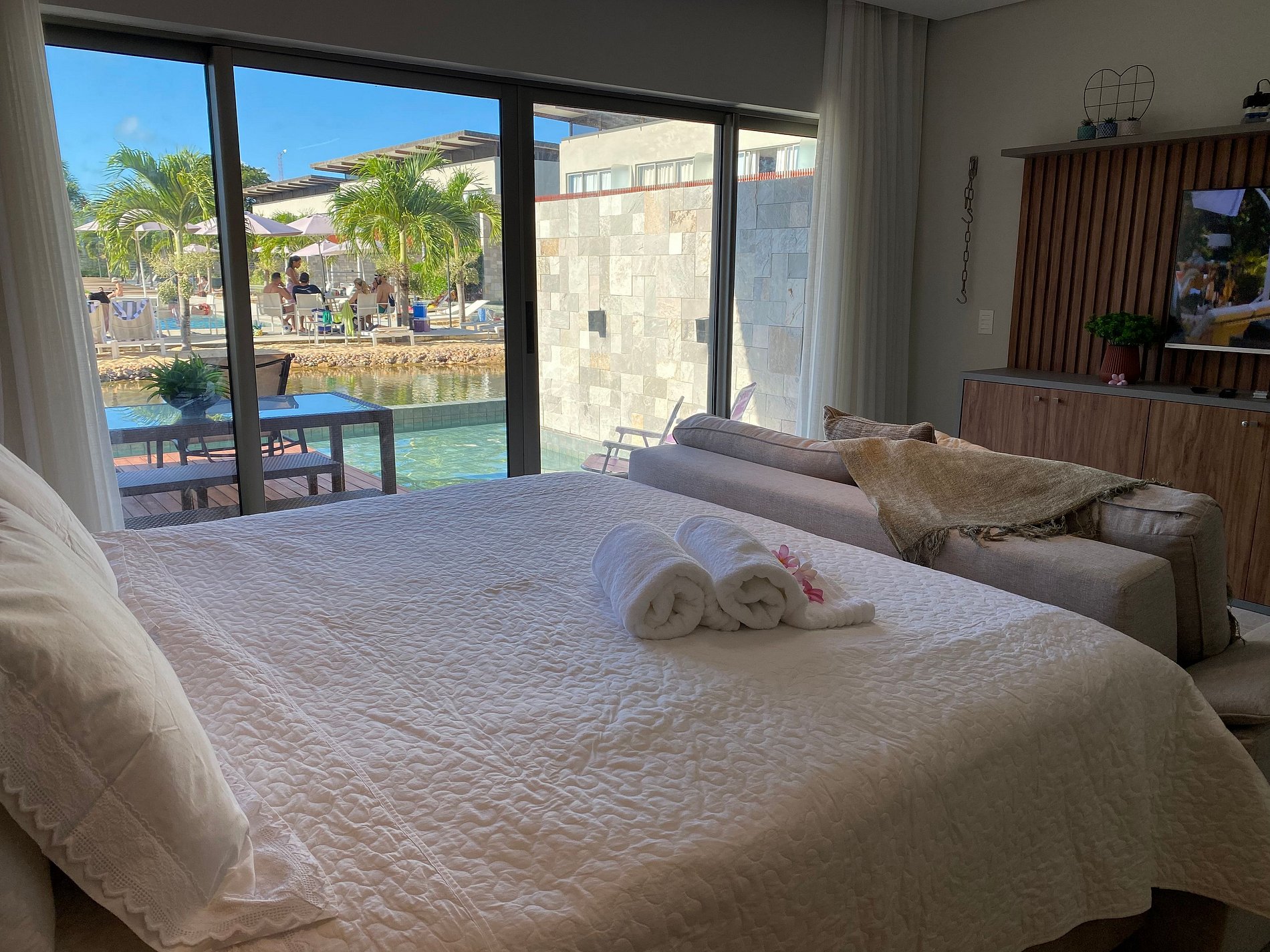 O flat Oásis possui um deck molhado e oferece uma vista privilegiada da área de lazer. Com 43m², dispõe de uma cama queen, sofá cama, geladeira, microondas, cafeteira, sanducheira, fogão por indução, smart TV, wifi incluso, secador de cabelo e alguns utensílios de cozinha para pequenas refeições. No térreo, traz beleza e conforto num cenário de luxo. O Île de Pipa oferece área de lazer com piscinas adulto e infantil, uma linda praia artificial, spa, academia e estacionamento rotativo.