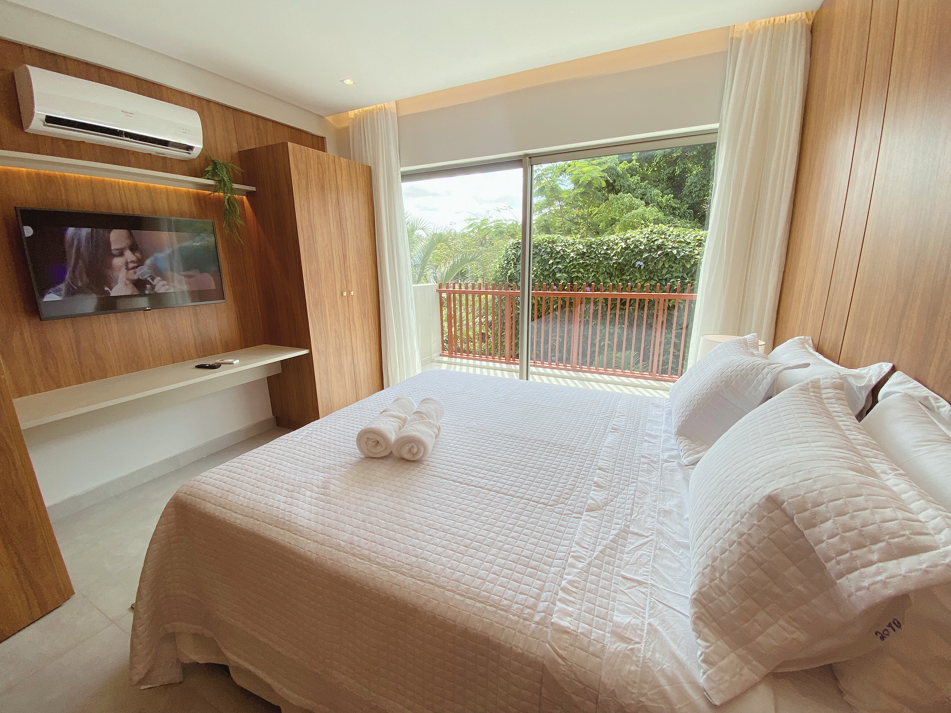 Flat Luxxor com uma charmosa varanda tem 43m² de área, sendo 02 quartos, acomoda até 05 pessoas em 02 camas de casal queen e 01 cama de solteiro. Dispõe de microondas, cafeteira, secardor de cabelo, frigobar, sanduicheira, smartTV e wifi incluso e alguns utensílios de cozinha para pequenas refeições.O Île de Pipa oferece área de lazer com piscinas adulto e infantil, uma linda praia artificial, spa, academia e estacionamento rotativo gratuito.