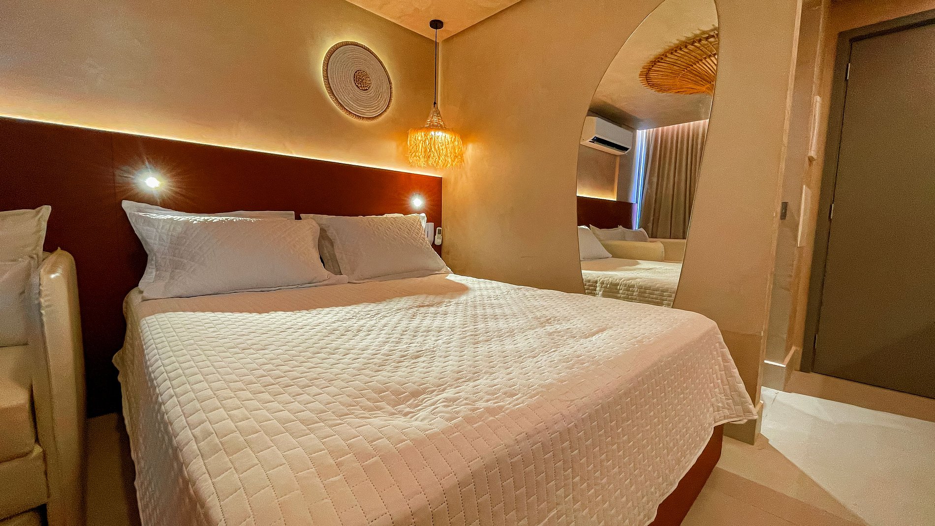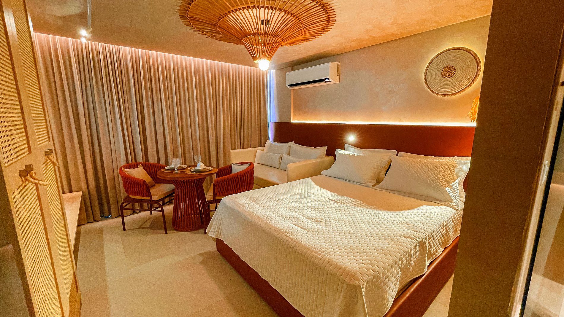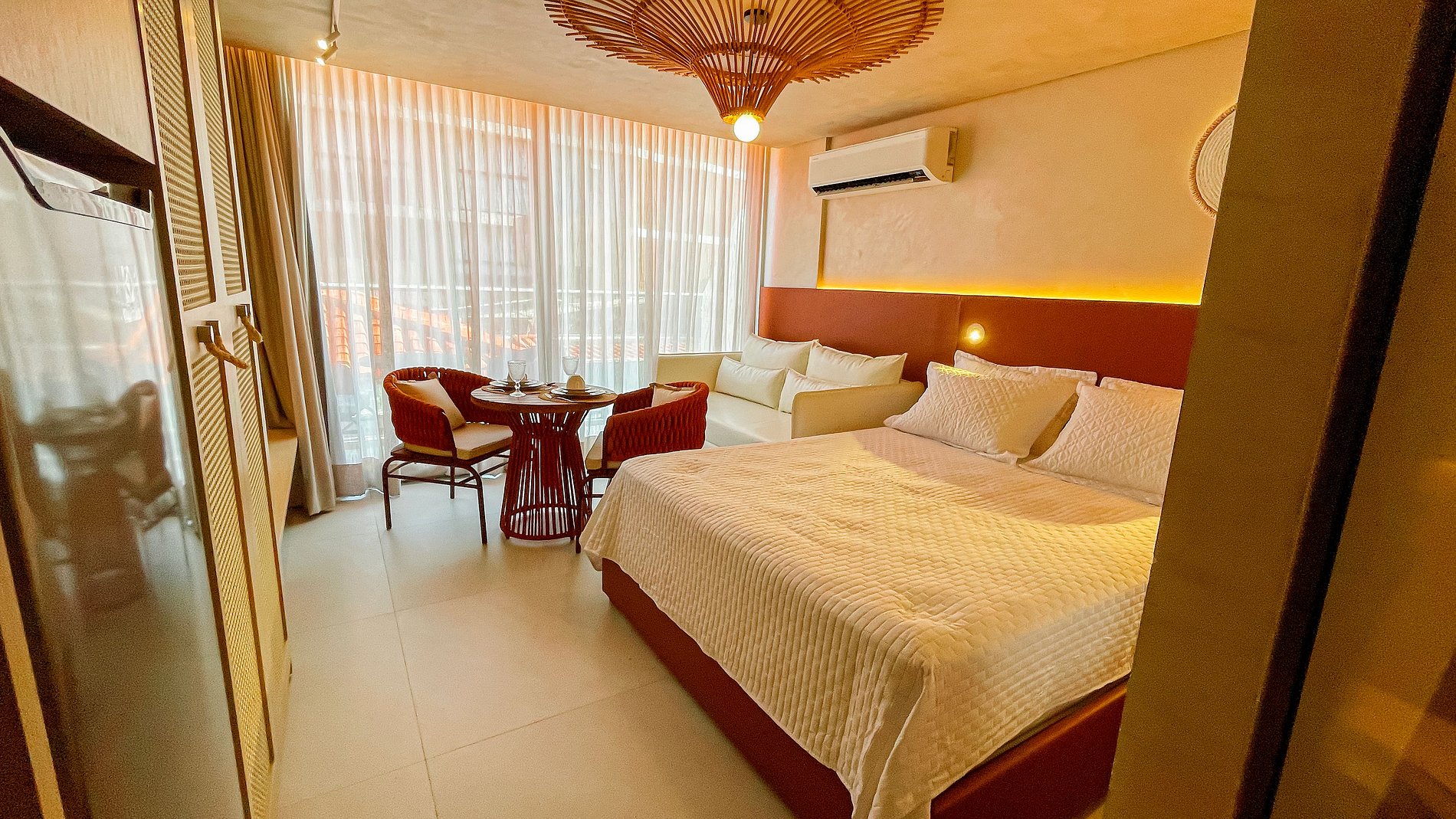 O charmoso apartamento possui um ambiente único, composto por uma cozinha compacta para pequenas refeições e o quarto com cama de casal. São equipados com Smart TV e Wi-Fi gratuito. Disponibilizamos enxoval de cama, com lençóis e toalhas, além de alguns utensílios domésticos para preparar pequenas refeições no conforto do seu próprio espaço. Como cortesia, oferecemos alguns amenities.