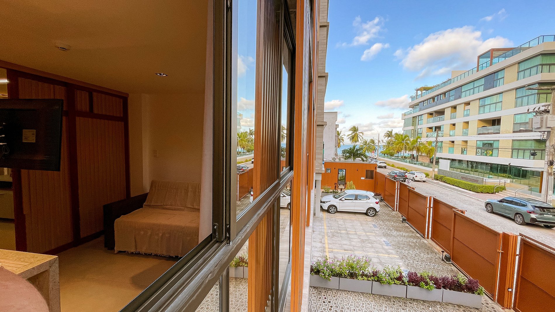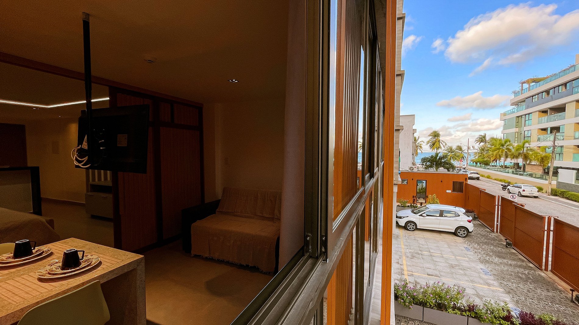 Nós da Almare Flats ainda oferecemos de maneira gratuita o kit de praia (com cooler, guarda-sol e cadeiras) mediante disponibilidade. O estacionamento é gratuito e oferece uma vaga por apartamento.