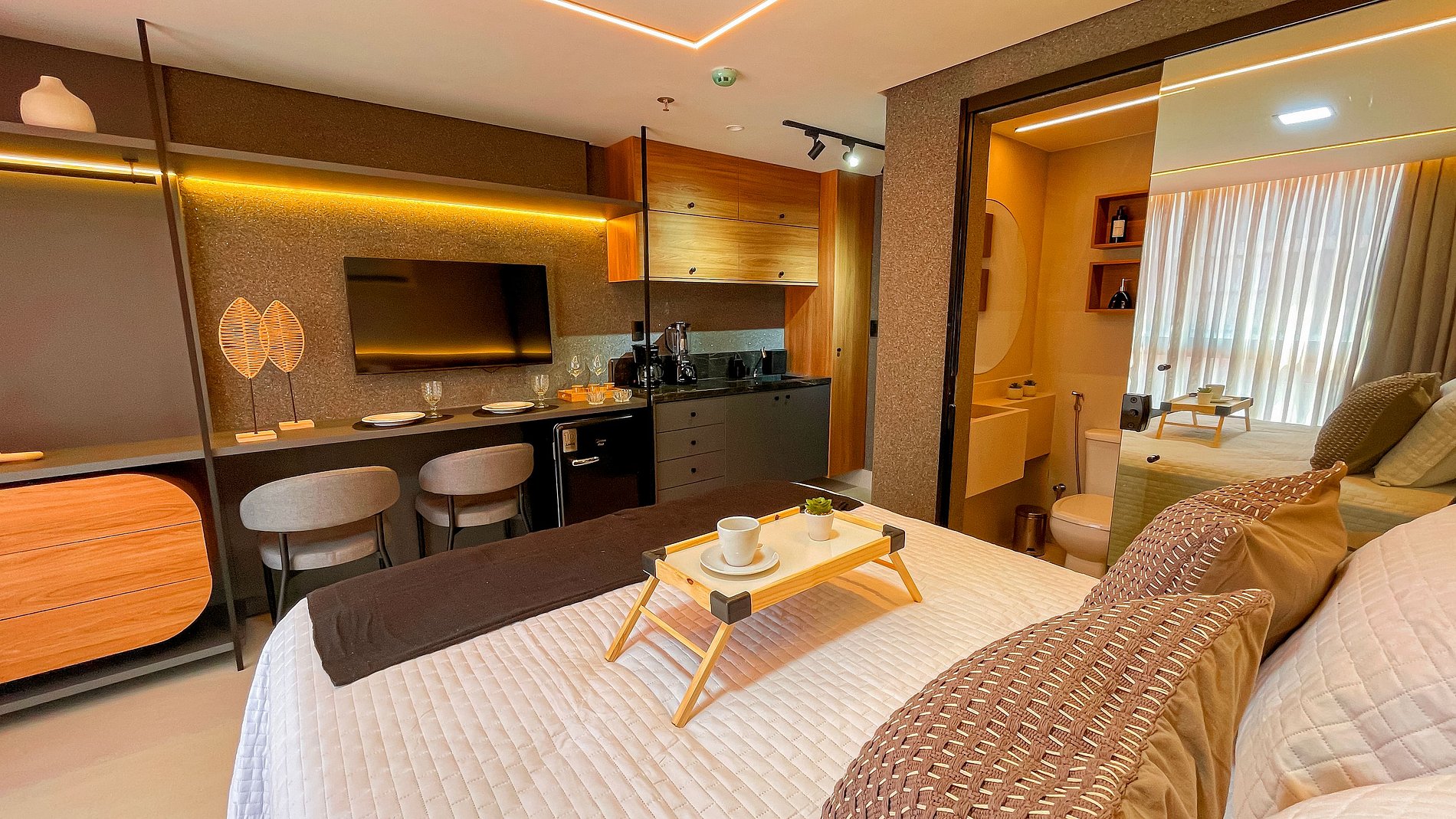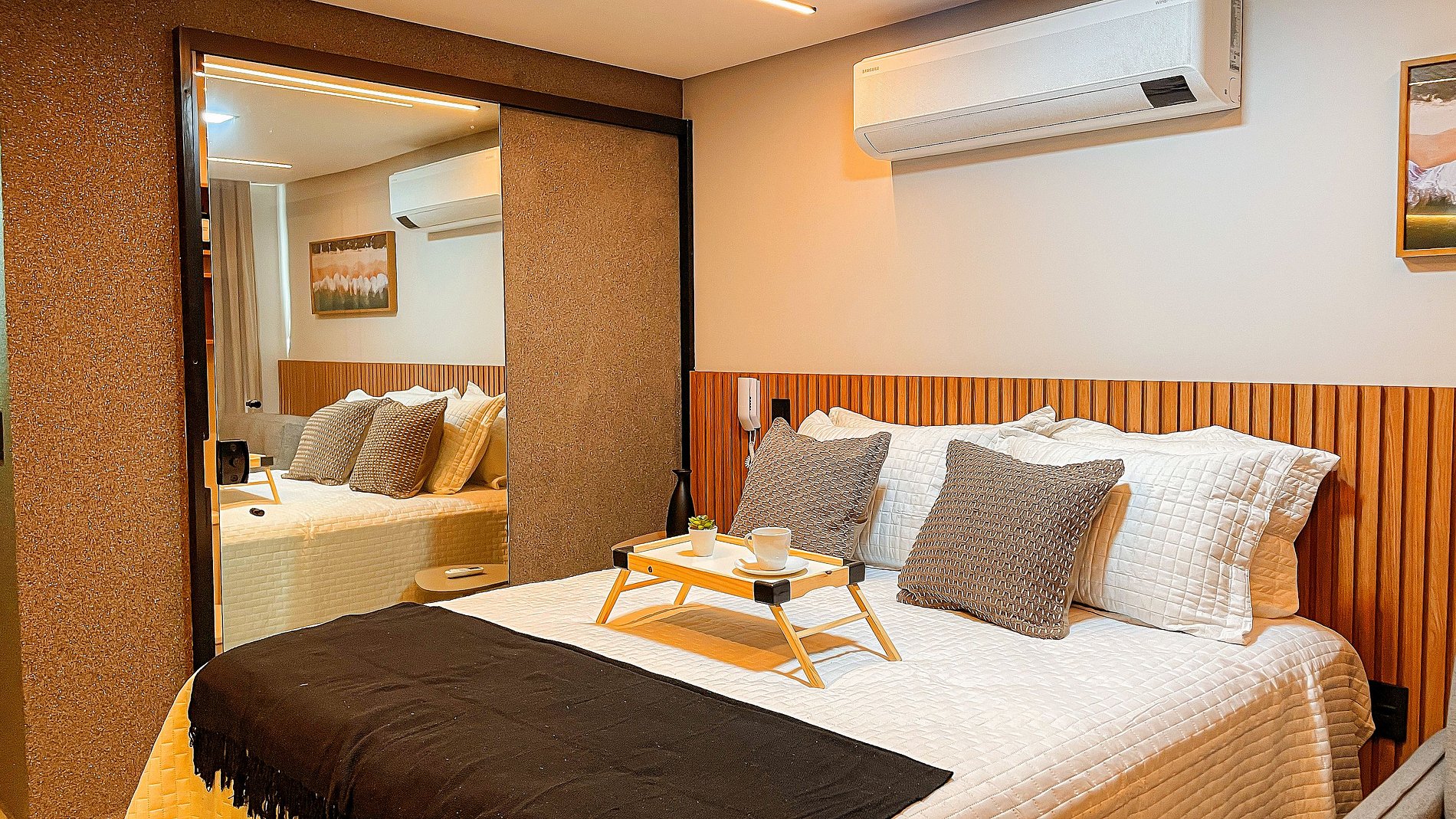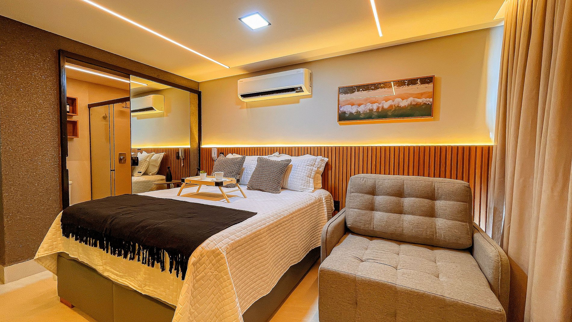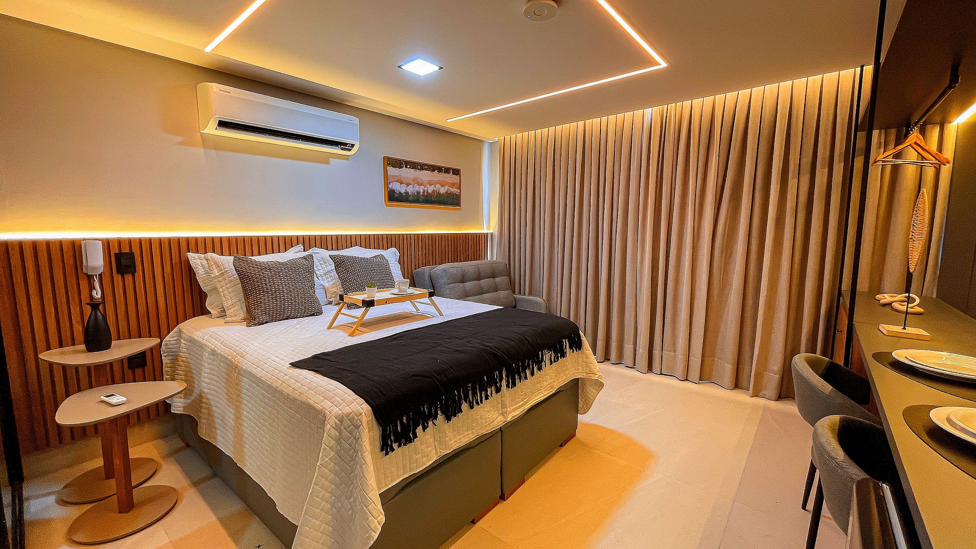 O apartamento acomoda confortavelmente até 2 pessoas em uma cama de casal e conta ainda com um sofá-cama ideal para receber um terceiro hóspede. O espaço oferece uma agradável vista lateral para o mar, trazendo ainda mais tranquilidade à sua estadia.A cozinha compacta é equipada com micro-ondas, frigobar, cafeteira e utensílios essenciais para pequenas refeições, e o apartamento dispõe também de Smart TV para o seu entretenimento.Localizado no Jardim Oceania, pertinho da Praia do Bessa e de excelentes opções de restaurantes e comércio, o condomínio oferece piscina na cobertura, sauna e academia, tudo pensado para garantir praticidade, conforto e uma experiência encantadora durante sua estadia.