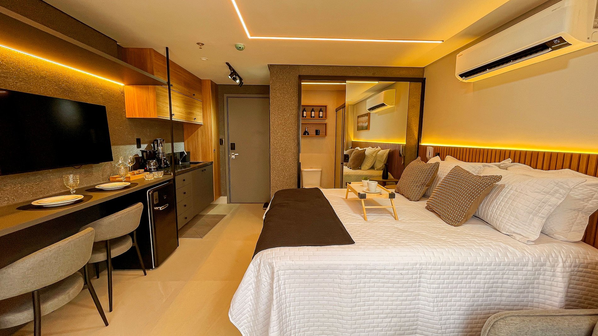 O café da manhã não está incluso na hospedagem. Caso queira solicitar limpeza, troca de toalhas e roupas de cama, será cobrado um valor adicional e o serviço precisará ser agendado com antecedência. Oferecemos uma limpeza de cortesia após 7 dias de hospedagem. Não aceitamos pets. O condomínio não permite a entrada de visitantes, apenas os hóspedes. Está liberado para uso a área de lazer com piscina e academia. Estacionamento rotativo disponível. Para a área da piscina e da cobertura, é proibido o uso de caixa de som, latas, garrafas, copos ou recipientes de vidro. Apenas recipientes de plástico para bebidas são permitidos. Não é permitido fazer lanches nestas áreas. Horário de uso da cobertura e piscina: todos os dias, das 08h às 22h. Horário de uso da academia: todos os dias, das 08h às 22h.