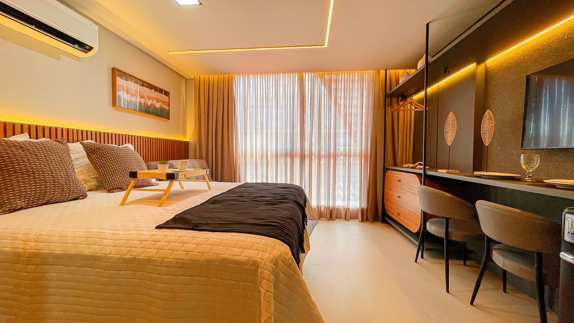 O apartamento acomoda confortavelmente até 2 pessoas em uma cama de casal e conta ainda com um sofá-cama ideal para receber um terceiro hóspede. O espaço oferece uma agradável vista lateral para o mar, trazendo ainda mais tranquilidade à sua estadia.A cozinha compacta é equipada com micro-ondas, frigobar, cafeteira e utensílios essenciais para pequenas refeições, e o apartamento dispõe também de Smart TV para o seu entretenimento.Localizado no Jardim Oceania, pertinho da Praia do Bessa e de excelentes opções de restaurantes e comércio, o condomínio oferece piscina na cobertura, sauna e academia, tudo pensado para garantir praticidade, conforto e uma experiência encantadora durante sua estadia.