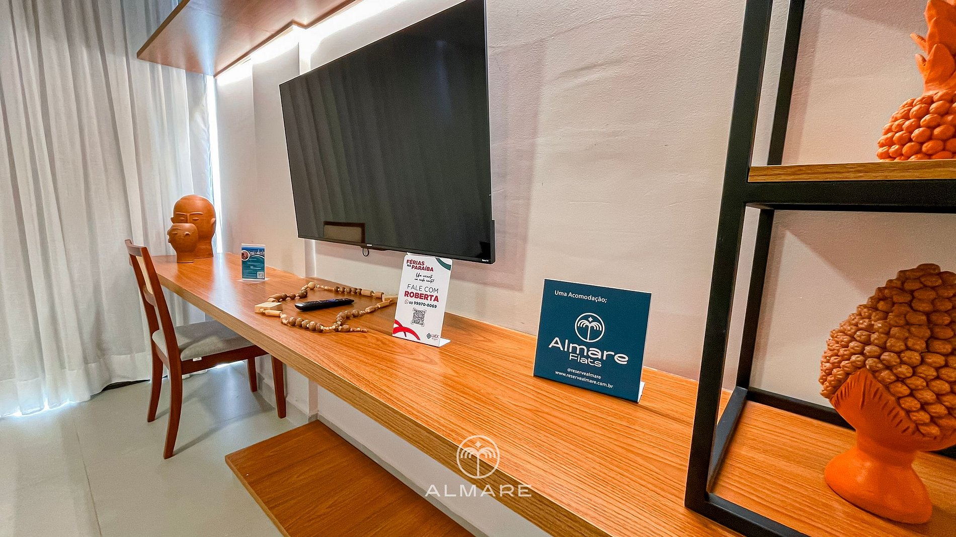 Nós da Almare Flats ainda oferecemos de maneira gratuita o kit de praia (com cooler, guarda-sol e cadeiras) mediante disponibilidade. O estacionamento é gratuito e oferece uma vaga por apartamento.