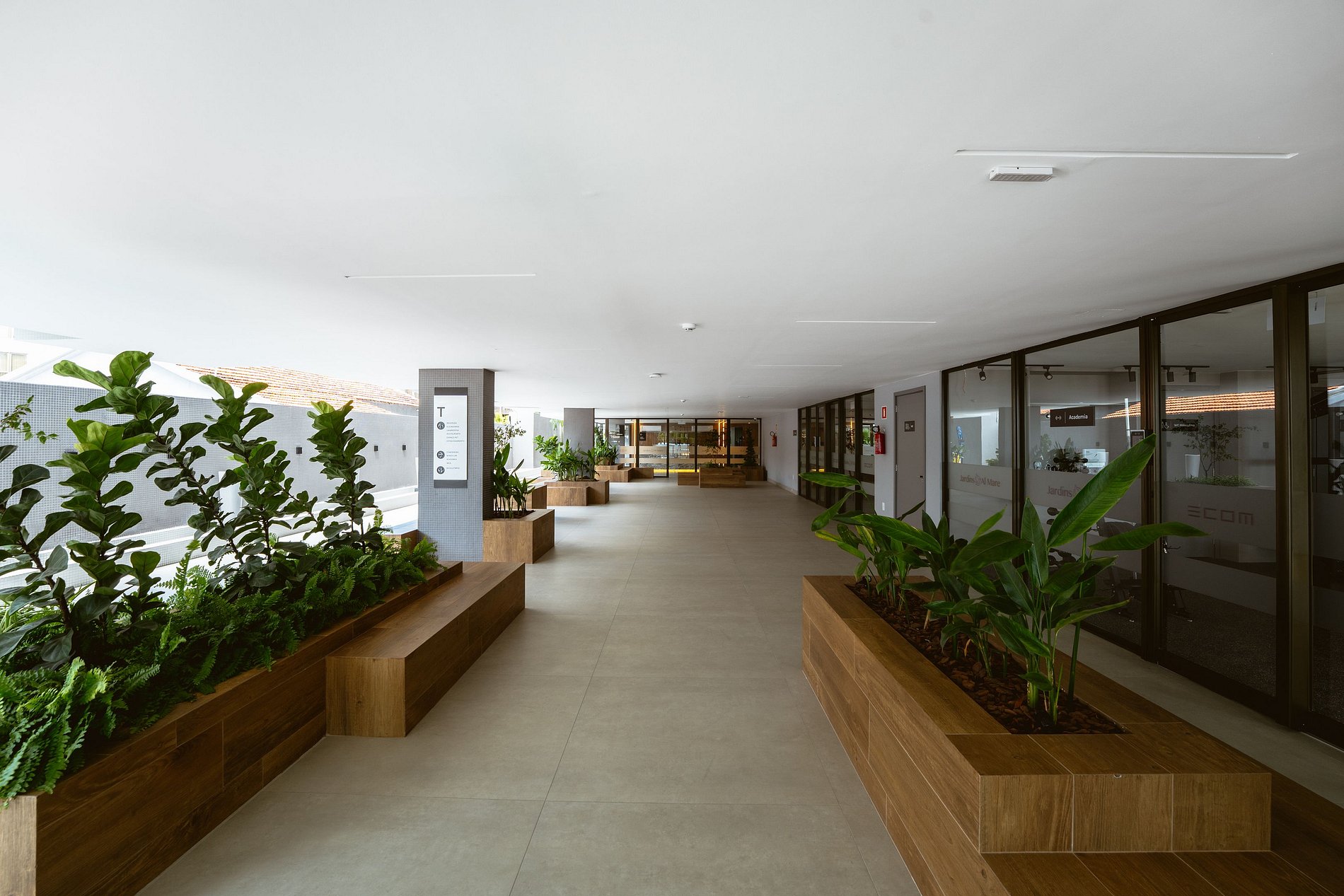 O condomínio conta com piscina, estacionamento gratuito e lavanderia de uso comum, disponível mediante taxa.