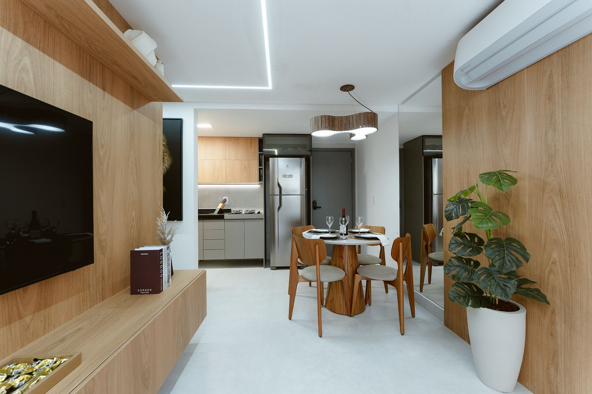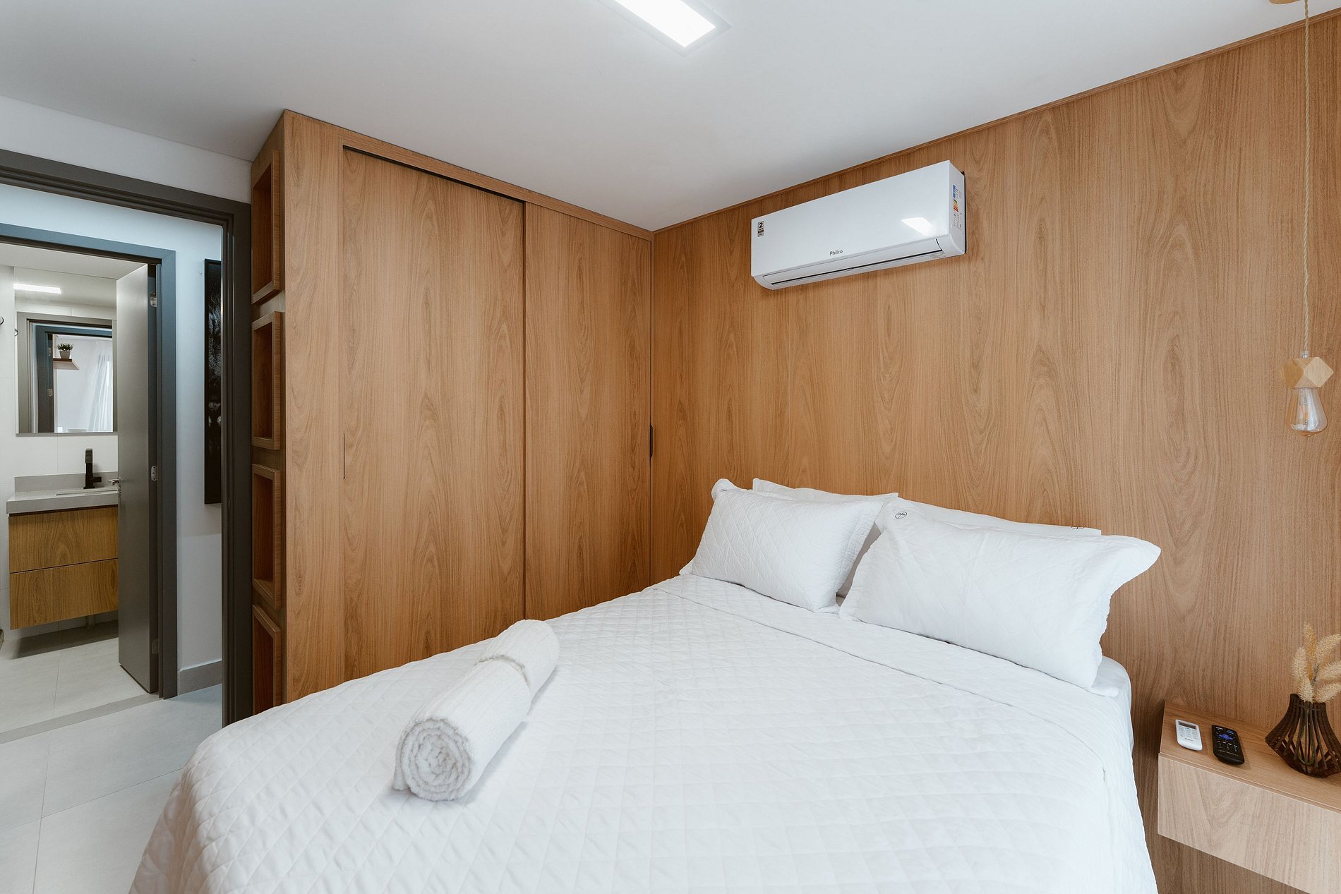 Apartamento em condomínio à beira-mar, com 45m², localizado no Condomínio Jardins Almare, no bairro Cabo Branco. Possui uma suíte e um segundo quarto, ambos com cama queen e ar-condicionado, além de ar-condicionado na sala. A cozinha é equipada com fogão de 4 bocas, geladeira, cafeteira, sanduicheira e utensílios básicos. Dispõe de Smart TV e Wi-Fi.