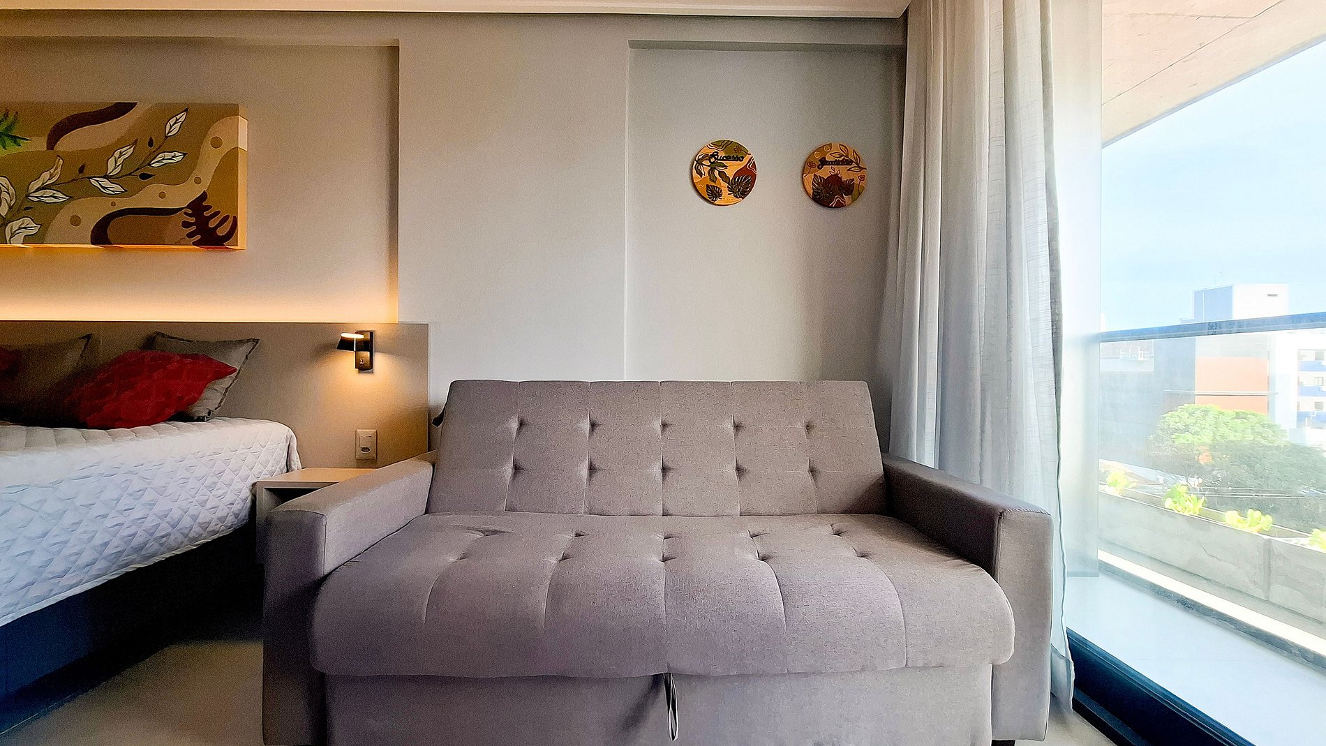 O apartamento é aconchegante e funcional, ideal para uma estadia confortável em João Pessoa. Possui cama queen e sofá-cama, acomodando até 3 hóspedes. Conta com cozinha equipada (cafeteira, sanduicheira, micro-ondas, liquidificador, air fryer, frigobar e fogão) e Smart TV. Localizado no Acqua Tambaú, próximo à orla, restaurantes, bares, feirinha de artesanato e com fácil acesso às principais atrações.