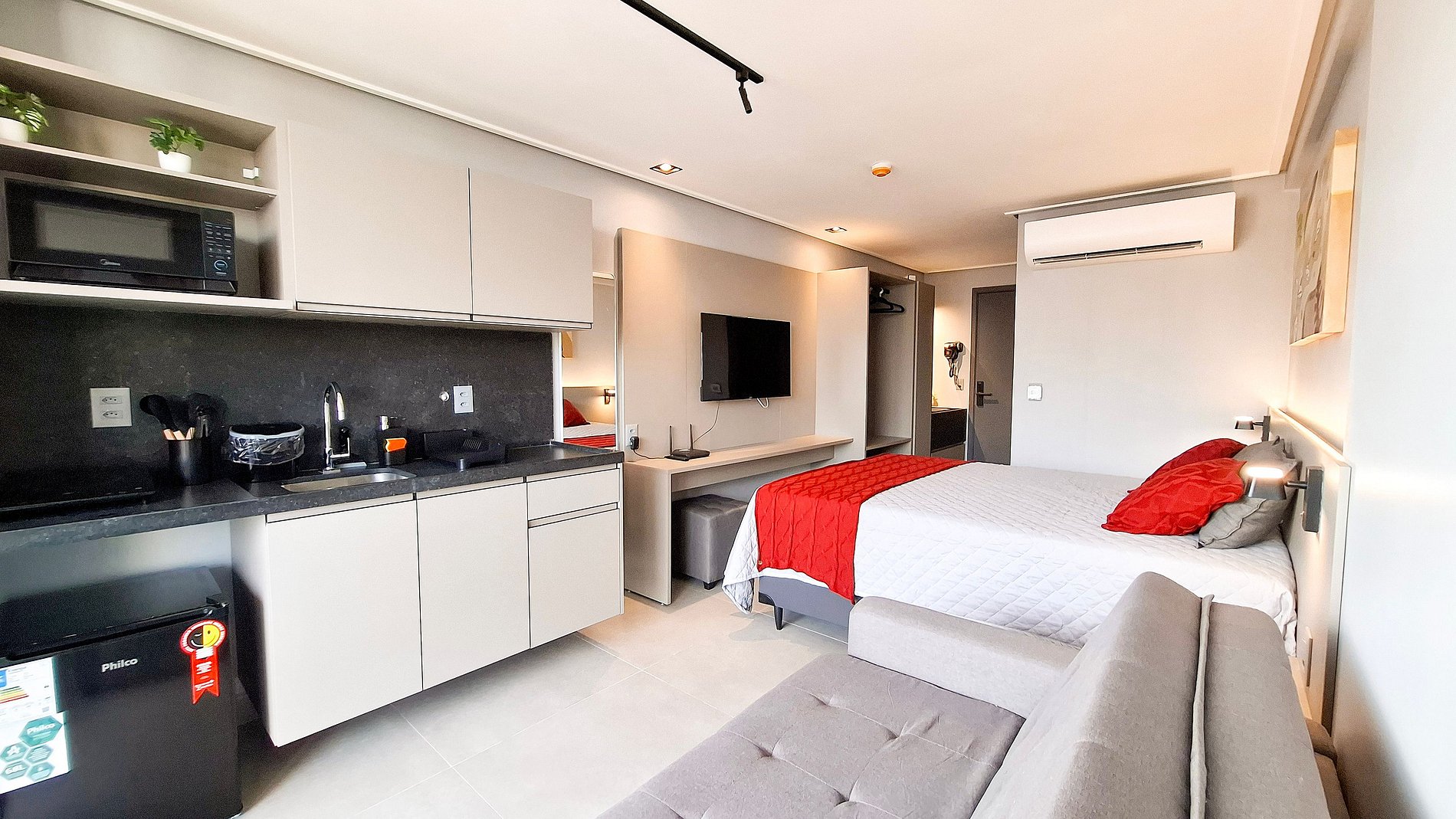 A área de lazer, com piscina e academia, está liberada para uso dos hóspedes. O condomínio dispõe de estacionamento rotativo.