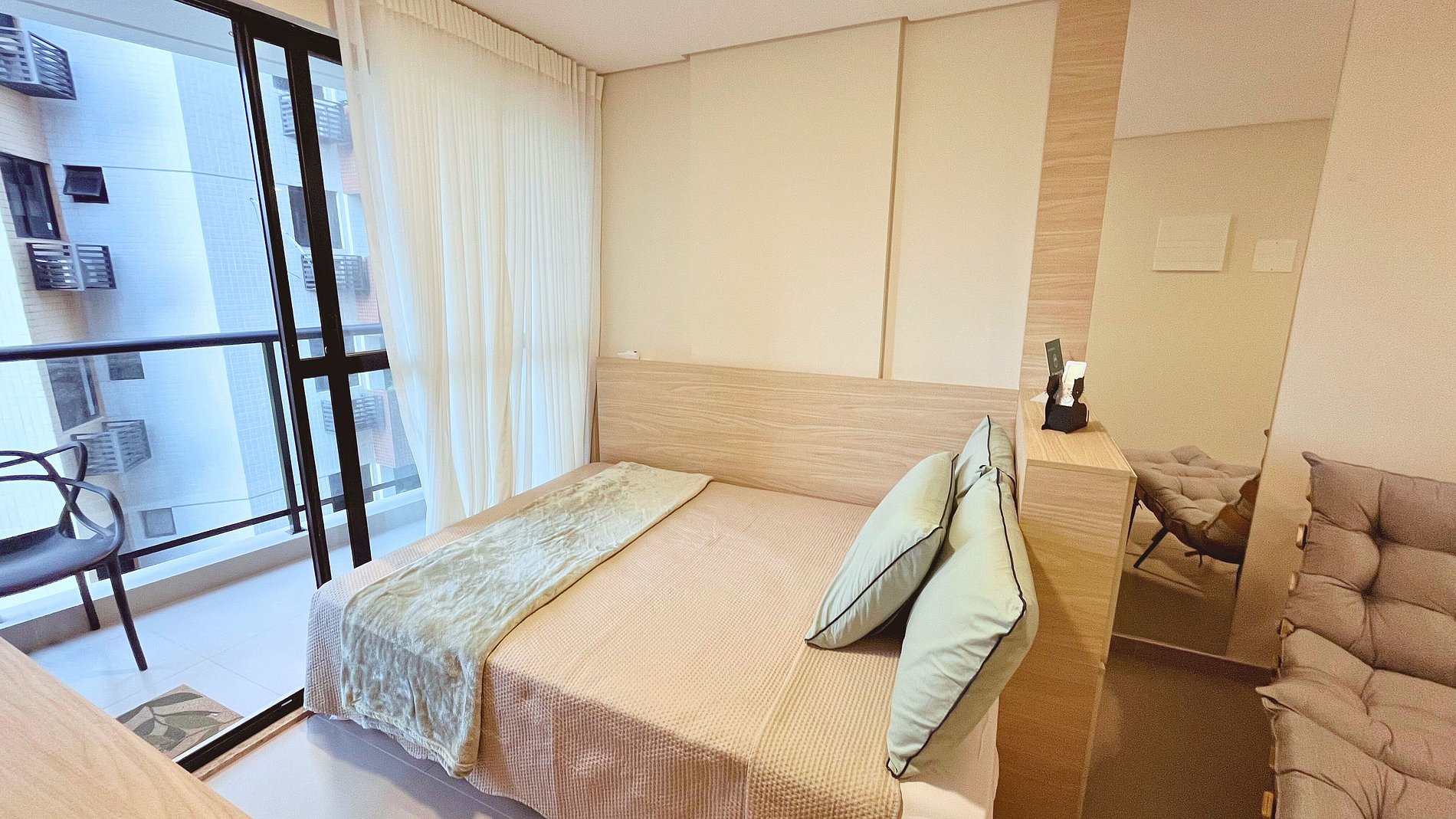 Apartamento lindo localizado em uma área privilegiada de Cabo Branco, a poucos passos da orla. Com 47 metros quadrados, o imóvel oferece uma suíte confortável, uma cozinha completa equipada, banheiro social, um quarto adicional de solteiro, além de uma sala de estar com TV para momentos de lazer. A varanda oferece uma charmosa vista lateral do ambiente externo. O prédio ainda conta com uma piscina na cobertura, proporcionando momentos relaxantes e uma vista panorâmica da região.
