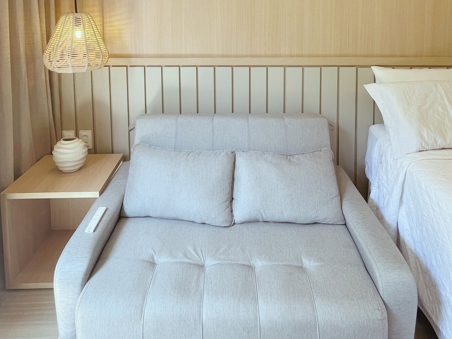 Com 24m², acomoda até 3 pessoas numa cama casal queen e um sofá-cama, possui cozinha compacta com microondas, frigobar, cafeteira, sanduicheira e alguns utensílios domésticos. Varanda aconchegante e privativa. Na orla da Praia de Cabo Branco, perto de bons restaurantes e bares. Fica a 2,4km do Largo de Tambaú, 4km do Mercado de Artesanato e tem vista para as Piscinas Naturais do Seixas. Linda área de lazer na cobertura, piscina aquecida, sauna, academia, coworking e estacionamento rotativo.